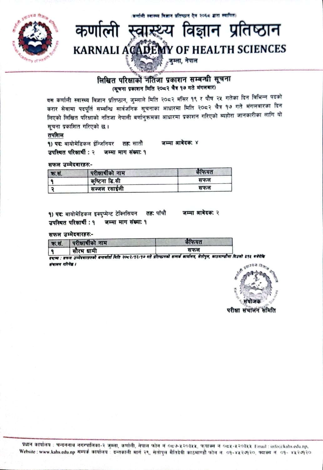 नतिजा प्रकाशन सम्बन्धि सूचना !